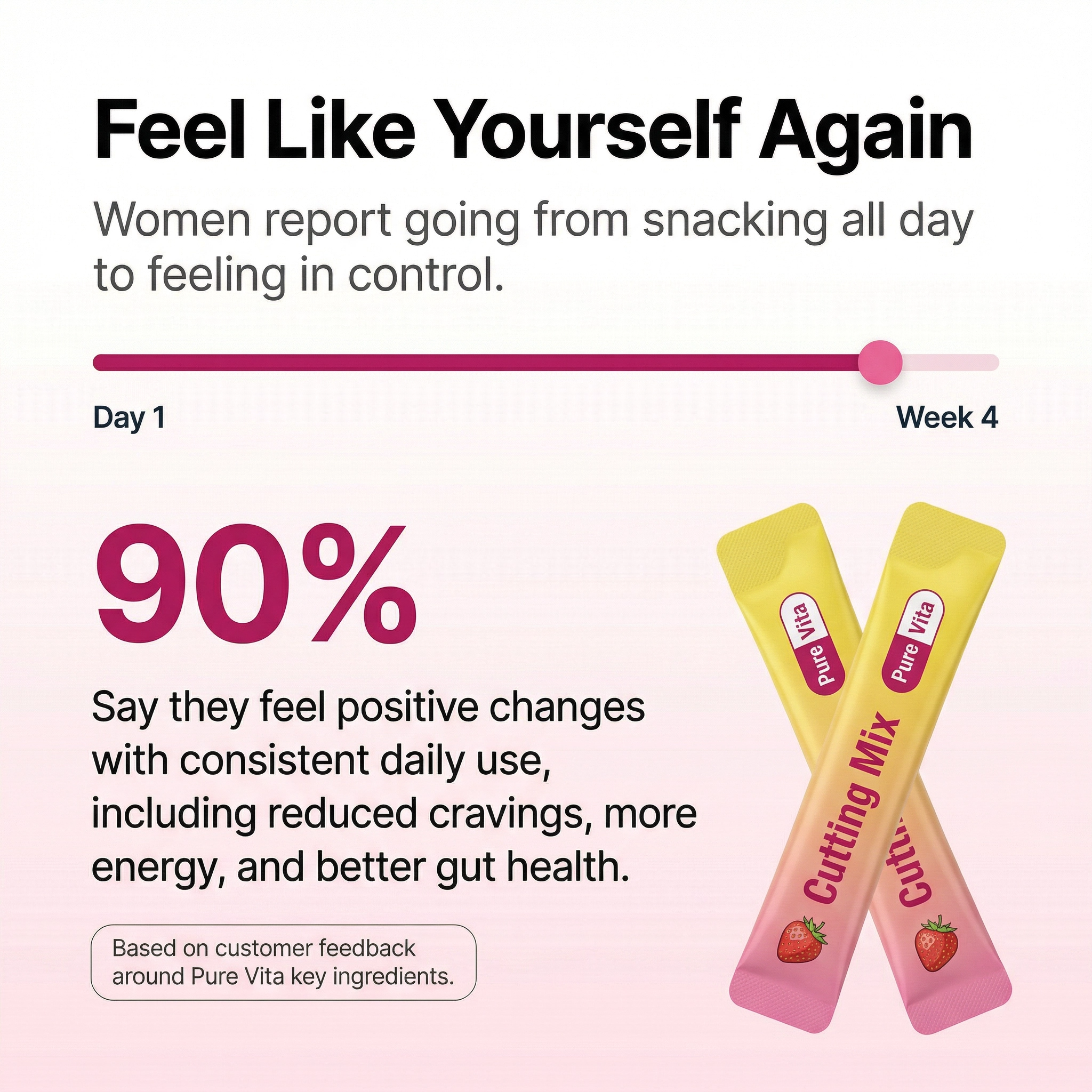 Within 1 hour, berberine starts signalling fullness to your brain. Within 3 days most women notice less bloating. By week 1, cravings drop noticeably — and by month 1, your body and clothes start telling the story.